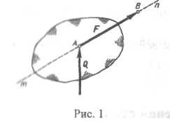 На рис. 1 изображена сила, приложенная в точке А и действующая по линии тп. Вектор силы обозначается, как правило, буквой с черточкой над ней (F), а модуль без черточки (F). Для силы F точка А называется началом, а точка В концом вектора. Нередко удобно изображать вектор силы так, чтобы стрелка, стоящая в конце вектора, упиралась в точку приложения силы (сила Q).