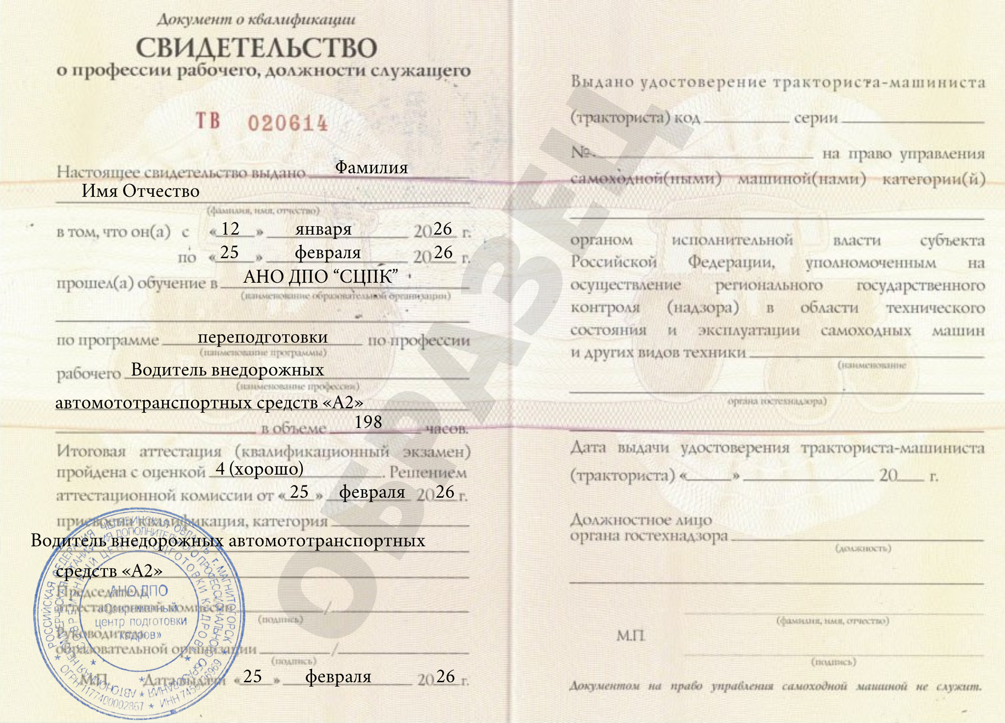 Завершается обучение сдачей теоретического и практического экзаменов в Государственном техническом надзоре с последующей выдачей свидетельства о прохождении обучения и удостоверения тракториста-машиниста.