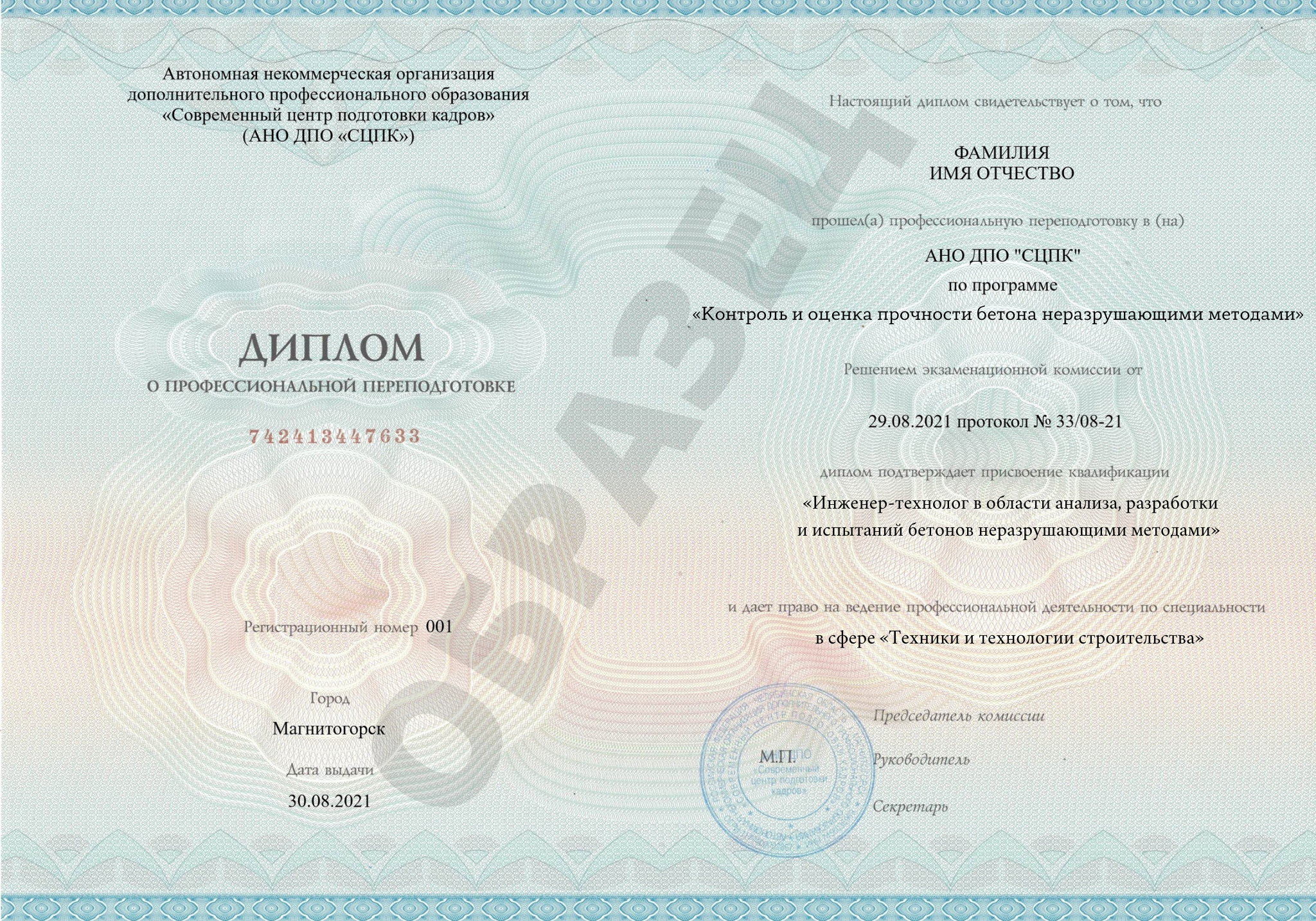 Программа профессиональной переподготовки «Контроль и оценка прочности бетона неразрушающими методами» с присвоением квалификации «Инженер-технолог в области анализа, разработки и испытаний бетонов неразрушающими методами», разработанная в рамках программ подготовки инженерно-технического персонала, позволяет слушателям получить теоретические и практические знания и умения, необходимые для осуществления трудовых функций, включающих в себя выполнение работ по неразрушающему контролю, подготовку, организацию и контроль выполнения работ, руководство выполнением работ лабораторией (службой) неразрушающего контроля, а также разработку технологической и нормативной документации, внедрение инновационных разработок в области неразрушающего контроля